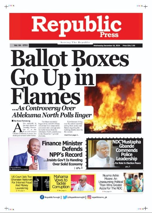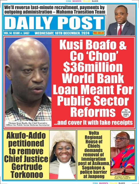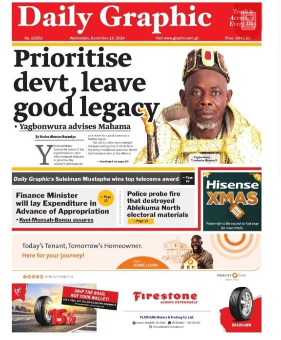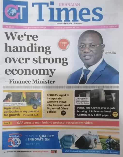Home Newspapers Front pages Today’s Newspaper Frontpages: Wednesday, December 18, 2024. Newspapers Front pages Today’s Newspaper Frontpages: Wednesday, December 18, 2024. By Wins Media - December 18, 2024 FacebookTwitterPinterestWhatsApp