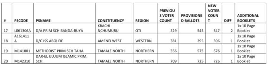 The revised ballot statistics, including a list of the affected polling stations, have been shared with all political parties, independent presidential candidates, and the designated printing firms.